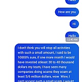 "Do not conduct business with these individuals. With the generous expectation of a 30% return, I felt compelled to contribute $200,000. Unfortunately, I was unable to see the money in my wallet, let alone the projected earnings. There were several fruitless attempts to contact them. I had to phone S I M O N C H * C O M to get assistance. A few days later, I received my money back, and I'm glad I reported them.