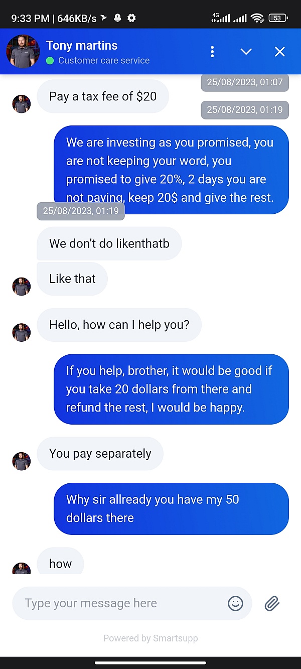 These scammers stop investing with tempting offers to helpless people, all my friends including me are blocking all investments and demanding more money from us, they say UK government has to pay tax, if you invest more, you can withdraw otherwise you will not get your investment back.