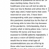 HORRIBLE COMPANY! I am a frontline ER nurse. I came down with COVID and was unable to travel to Boston for my 50th bday. Unfortunately, I booked my hotel through prestegia.com. They are refusing to give me a refund or credit for the $2000 I paid for a trip I cannot physically take. SUCH A SCAM! NEVER BOOK WITH PRESTEGIA.COM