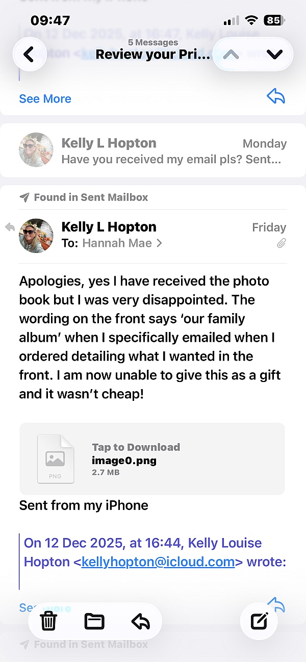 Kayla was a delight to chat with today and couldn't apologise enough for my inconvenience. The problem lies with the postal company not Printerpix.