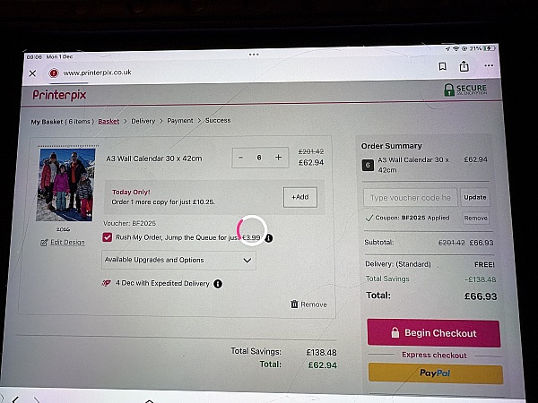 Used the online chat service to establish the status of my order. The chat response was very quick and Kayla was the representative I chatted with. She very quickly updated me on my order and I'm hopeful I'll receive it tomorrow as I've paid for next day delivery and had expected it today.