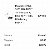 Went to Home Depot, the Milwaukee M18 pole saw was $349 tool only. Red tool store has it for $299 which came with a battery, the battery home depot was selling for $199.00. Red tool store saved me a lot of money, shipping time was manageable, and they offer different payment methods which was nice.