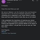 Again, we sincerely apologise for the inconvenience this may have caused. Your retainer will be refunded to you on 11 October 2023.