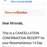 Answer: Hello Debbie, The information regarding our Subscription Service can be located in our Terms of Use, Plan Comparison, Sales Receipt, Plan Information, and Alerts. The cancellation process is very simple: Log in > My Account >> Plan Information >>> Cancel. ResumeGenius.com provides a full refund to customers who are still within their 14-day trial subscription term. Customers who wish to redeem a refund must contact customer service prior to the end of their trial subscription term either by calling customer support at (866) 215-9048, emailing support@resumegenius.com, or by using live chat via ResumeGenius.com.