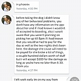When I returned to this persons place, this pet sitter told me that one of my 2 dogs was dead. She didn't even call us until our dog was dead and wasn't even calling the dog by the right name. And she apparently let her kids walk the dogs who were 4 and 6 years old - I'm pretty sure they weren't vetted.