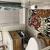 Love this rug. It is a relatively difficult size to find something beautiful. Very happy with it. It matches in my bathroom perfectly.