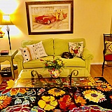 It has been a dreary day, so I cheered myself up a bit by looking at bright, floral rugs. Found a runner to fit that description to a "T". It is going to look really nice in my sunroom.