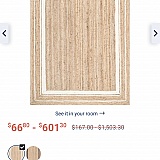 I paid about $350 for two rugs and rug pads. One rug translated totally different in person, the other was a completely different color. They are charging me $75 to return them within a week of purchase. So I've lost $75 for nothing and I still have no rugs. Photos show the color difference between the light jute online vs the dirty brown I received.