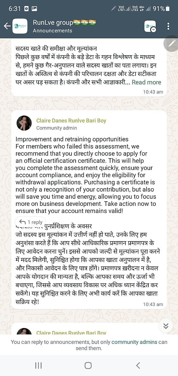 Cheating company withdrawal amount stopped company tell AL Exam writing pass the exam & ******* certification give And release the withdrawal amount many poor persons purchased the server this company created many poor people life don't trust Runlve company