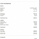 Paid $177.95 for nothing. This was the cost for the diagnostic.
