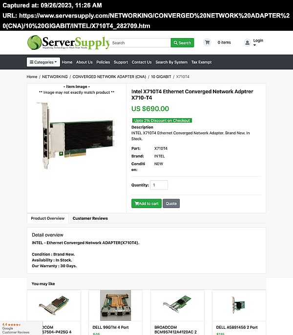 Serversupply have vast selection parts of server and Networking. I bought some Hpe switch and SSD for my hosting company. Their pricing are very shipping is quick and intact. Highly recommended.