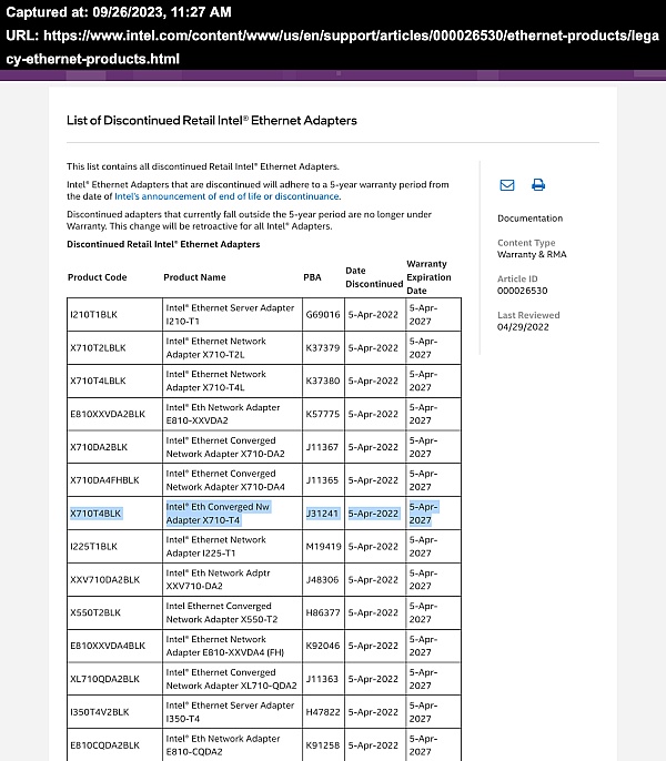 I contacted ServerSupply, and their "rep" said it was not their problem because it was beyond their 30-day "warranty." This would typically not be a problem because Intel states on its website that this particular product has a warranty until April 5,2027. Unfortunately, the product I received was actually a Dell part (DP/N 0k5v44), as there is no factory warranty, and I am stuck with a costly paperweight.