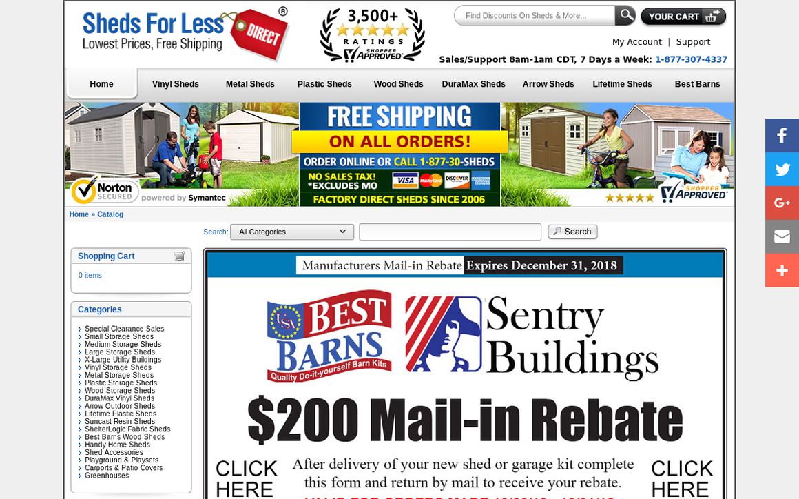 Shedsforless has a rating of 1 stars from 1 review, indicating that most customers are generally dissatisfied with their purchases.