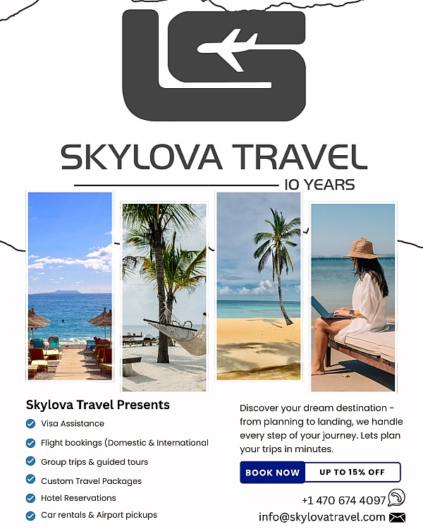 Skylova Travel - Discover the World with Ease At Skylova Travel, we make your journey seamless from start to finish. Whether you're traveling for business, leisure, or a special occasion, we provide tailored travel solutions that fit your lifestyle and budget. From visa assistance, flight bookings, and hotel reservations to customized travel packages, car rentals, and guided tours, Skylova ensures every detail is handled with care. With a focus on exceptional service, transparency, and unforgettable experiences, we help you explore the world stress-free. Whether it's a getaway to Qatar, a cultural escape, or a multi-city adventure, our expert team is here to make it happen. Your journey begins with Skylova — Where Travel Meets Trust