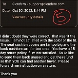 I received the covers on Oct. 26,2022. After trying one of the covers, I didn't bother putting the rest on. I didn't like the quality and was quite dissatisfied with it, I wanted to return my covers. I emailed them right away. They requested images. I sent them. They claimed to have sent the right things. I clarified that I didn't say they sent the incorrect products. I made it very obvious that I didn't like the quality and that I wanted to send it back and seek a refund. They then responded and made me a $4 USD offer of compensation. No, I said, I wanted to return the items and get full refund. They replied and said to give the product to someone else and they'll compensate me with $6 USD. I said no. I want to return and get my $90 (the amount I spent). They replied and said $8 USD was the highest compensation they can offer me. I quit emailing them because it is obvious that nothing will change. I raised a dispute with Paypal, and within two minutes (literally), Paypal gave me a full refund. I guess PayPal knows how $hitty this business is and always getting a lot of disputes.