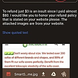 I bought a sofa cover and the size didn´t fit (specifications on their website are not correct). I sent an e-mail asking for an exchange and they replied nonsenses like I should give it to someone else, and that they can refund $6 dollars. I have been exchanging e-mails with them for the last month and I keep on getting the same response, so in a nutshell they do not want to exchange the product. Also the products are very poor quality,