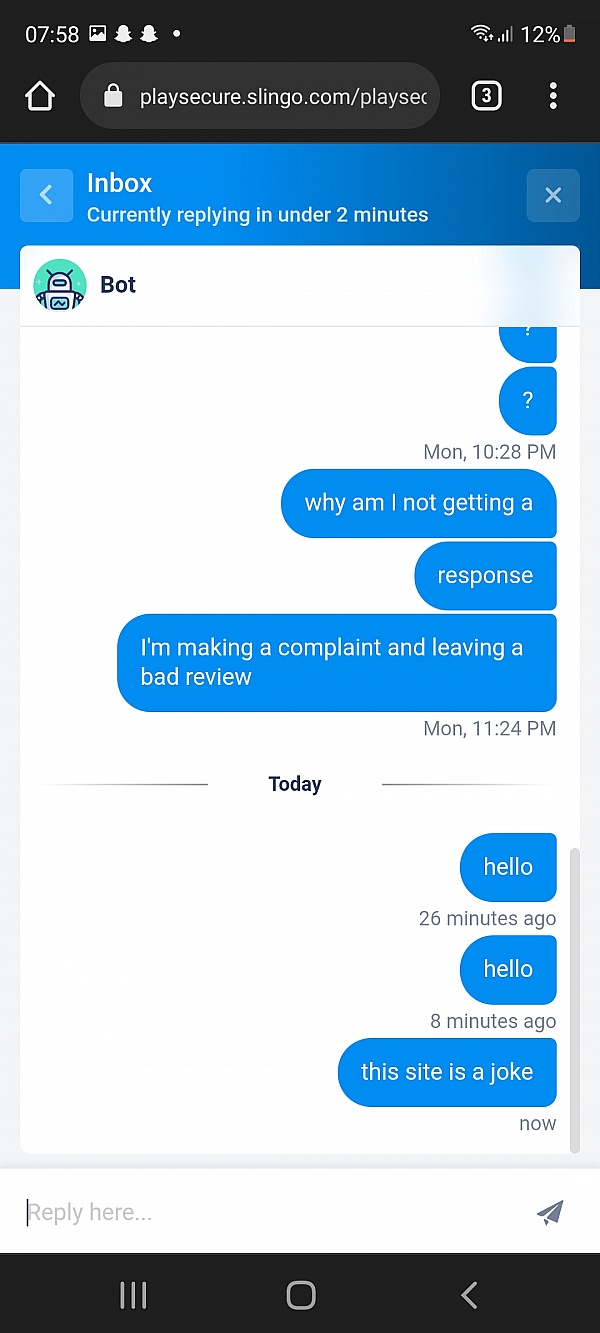 Spent a fortune on here and the slingo games can be addictive! But when I lowered my deposit limit (trying to be more responsible as i hardly withdrew anything!) which then immediately resulted in them banning my account. Its actually a blessing to me to get away from this awfully run website. BEWARE!