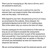 Answer: Hello Judith, I regret to hear that you were not able to get a good response from our representative agent. Kindly provide your Order ID so I can check this further. Thank you! :)