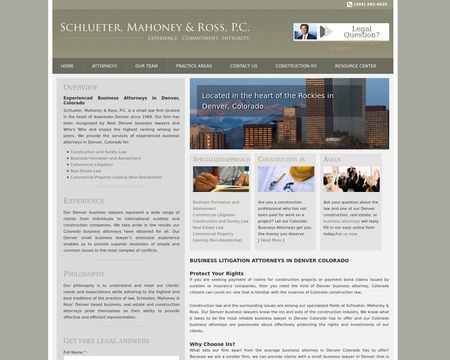 Schlueter, Mahoney & Ross, P.C. has a rating of 4 stars from 1 review, indicating that most customers are generally satisfied with their purchases. Schlueter, Mahoney & Ross, P.C. ranks 97th among Legal Services sites.