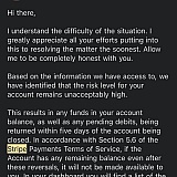 I tried to reason with their customer support, providing a detailed explanation of our business operations and addressing any potential concerns. However, they remained adamant about their decision, offering no clear explanation or justification.