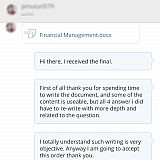 Chose a writer who was a bit more willing to answer my questions, and gave then the bid. The work received was... how to put it... high school level stuff. I expressed on my bid and to my writer this is for my master assignment. Asked for revision, but wasn't much help.