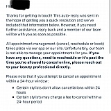 I scheduled an appointment with a stylist. The stylist emailed ME and informed me under the 24 hour deadline that the appointment was going to have to be rescheduled. I informed her that I could only come the next day or the appointment would have to be canceled so I could find someone else to book. Well the stuff read my message and never responded. I emailed Styleseat with screenshots of the email and the text messages of stylist attempting to reschedule through messages and emailing me after the 24 hour deadline and all they told me was that their team was not able to cancel appointments. That I would have to reach out to the stylist to cancel or reschedule the appointment since it's past the 24 hour mark. Again, I have reached out to the stylist and I have not gotten a reply from her. So what is the next step? They have an awesome way to make sure their stylist don't get scammed but what about paying customers? It also gave menthe option to cancel the appointment if I payed 50% of the appointment fee. I'm not really understanding how I have to pay for something when I was prepared and ready for my appointment but my stylist was the one who wanted to cancel/reschedule. So i'm supposed to still pay her 50% without getting a service provided to me? This whole thing sounds like a scam and I will be deleting my account after this is resolved. I've been on this site for years because my previous hairstylist used this platform but i've moved to a new area and needed someone new. I see now this site is not reliable or trustworthy.