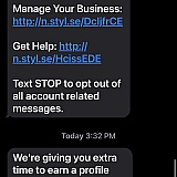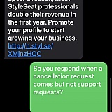 Well, I immediately received 2 marketing text messages within 5 minutes offering me a "profile boost" saying how stylists benefit when they stay on Styleseat.