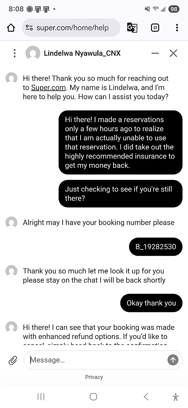 Thanks for reaching out. As we are unable to identify your booking through the information in this review, we kindly ask you to, please send an email to corporate@snaptravel.com with a summary of your case and Order ID. Thank you