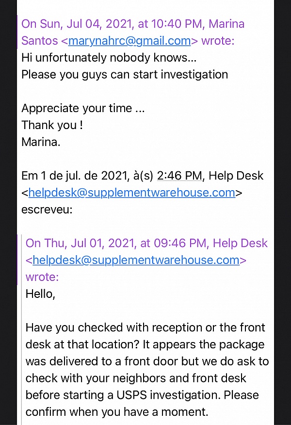 Was there an issue with the replacement package we sent you? If there is anything further we can do to assist you, please reach out to us at: helpdesk@supplementwarehouse.com so we can fully resolve any issues you may still have.