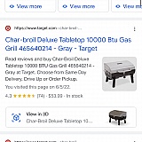 And when I call to ask if they can honor the price online from there website they say they don't see 53.99 they see 89.99 target char broil deluxe tabletop gas grill. Today 6-5-2022 I didn't purchased it because they did not want to sell it at 53.99.