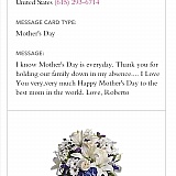 Ordered flowers for my Mother for Mother's day to be delivered Friday. Delivery was delayed but promised by Sunday. Mother's day has come and gone and mom never got the flowers. Will not use this company again.