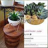 I ordered a Large all succulent arrangement in a pot that sits on a table. What was delivered was a very small pot in a stand with mixed plants. When it was delivered it was totally wrapped in tissue paper and left on the steps at the front door. The delivery person rang the bell and left without waiting for my faughter to answer the door. My daughter opened the door and seen a big pile of tissue paper below her and when she pocked it up it slipped out of her hands because she couldn't see the bottom or even what it was. All that survived was one non succulent plant and the tiny 5 inch pot and stand.