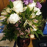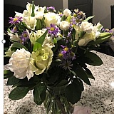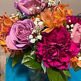 I will never use this florist again. What my Mom got was Not what I ordered for her Birthday. I could have gone to Sam's Club and gotten her WAY better, And FRESH flowers for 15.00! The flowers she received were very wilted. I'm embarrassed she got flowers like that and angry I paid over 65.00 for! The picture of flowers with the clear vase is what I thought I sent her. The picture of the flowers in the purple vase is what she Actually got. Never again will I use this 'florist'.
