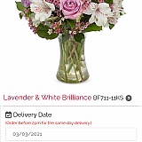 Ordered my sisters flowers that were supposed to be Lavender and White, they sent flowers that were orange and red with 3 lavender roses. Was supposed to be a deluxe bouquet but turned out to be more of a 20.00 bouquet. Horrible service and horrible product. I'm a florist myself and would never ever do this to a customer.