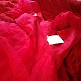 Fabric is cheap and stinks, there are defaults, cut is different from the photo (tulle on the top, train, lenght, etc...), color is not as expected and size doesn't respect size chart.