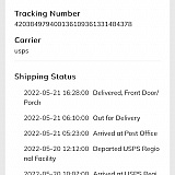 They said my product was delivered to my porch 5/21. I live in an apartment complex USPS does not deliver to your doorstep in apartment complexes. I went to the post office got the form for the tracking, and it is for four days later to a totally different address. The post office says they do this a lot use the same tracking number over and over again. IT IS A SCAM! I will be informing the BBB