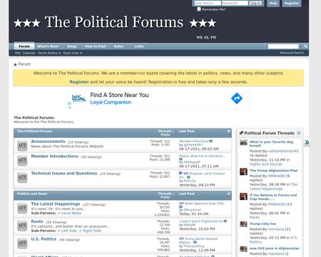 The Political Forums has a rating of 1.7 stars from 6 reviews, indicating that most customers are generally dissatisfied with their purchases. The Political Forums ranks 322nd among Forum sites.