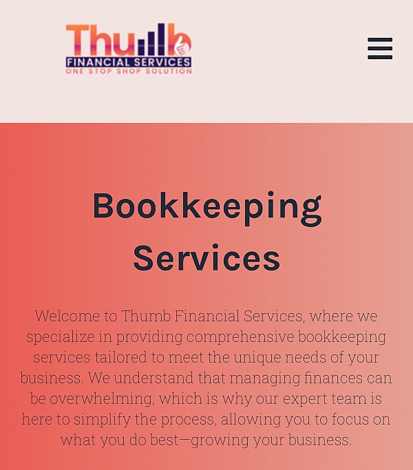 Welcome to Thumb Financial Services! Our company specializes in solutions for businesses in need of credit repair, tax preparation services, website design, payment services, customer support services, credit card processing, marketing services, social media management, bookkeeping, accounting, consulting, personal/business loans, payroll, debt management, etc. We are dedicated to helping your business thrive and succeed. Let us use our skills and knowledge to help you, while you focus on what you do best. We provide DIY Credit Repair Software as well. Choose us for solutions that meet your unique business needs. Our services will ensure you succeed in today's digital market. Our clients maximize their revenue and online visibility.