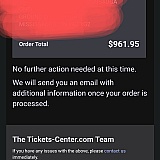 Could have gotten the same tix for half the price from Ticketmaster-which was the site I THOUGHT i was on. Ticket-center didn't even have guts to put in the paid price/ ticket on the stub-placed a low-ball phony number instead, not even close to the inflated amt.charged. Tried to reach you before writing this review but could only send an email & received no response from that. Fool me once, shame on you; fool me twice, shame on me. Never again will you see my $$$ ticket-center!
