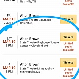 I was looking to get tickets for the Alton Brown Live show in Minneapolis but discovered that the show was playing at the same time in Cleveland. I messaged the tour site and was told that they had already played Minneapolis, the tickets they're selling are worthless!