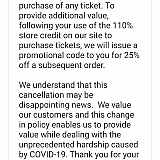 6 MONTHS AFTER PURCHASING TICKETS I GET AN E-MAIL TELLING ME I'M NOT GETTING A REFUND I'M GETTING STORE CREDIT WHEN THE POLICY AT PURCHASE WAS A REFUND. I HAVE BEEN EMAILING FOR MONTH WITH NO RESPONSE UNTIL TODAY WHEN I RECEIVED THIS NEWS. THE E-MAIL ALSO PUT A TIME LIMIT ON USAGE OR LOSS OF COUPON! 1! AVOID THESE PEOPLE LIKE THE PLAGUE!