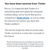 There are plenty of dating sites. Please don't lose your money to tinder and pay for an account. I was banned with no specific explanation. I cannot think of a single thing I did wrong to violate the terms of service or community standards. They took my money for a week's subscription, and I got an unexplained ban after three days with no refund, because I "violated the terms of service" which are extremely broad. I followed the appeal process to only get an automated response telling me to refer to the terms of service. Please don't lose your money to this app. After much digging, there are a lot of people on the internet complaining about getting banned for "no apparent reason." There are much better places to put your money.