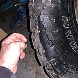 New all terrain tires Iron Man All Country M/T. Less than 150 miles and the side wall blew out on both rear tires a week apart and can't get any help to replace them or make it right seems to be a waste of money. And I have over $3,000 worth of tires on 3 vehicles all the same brand hate to change brands but will have to after being a loyal customer for years