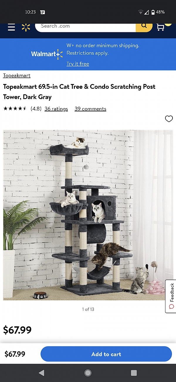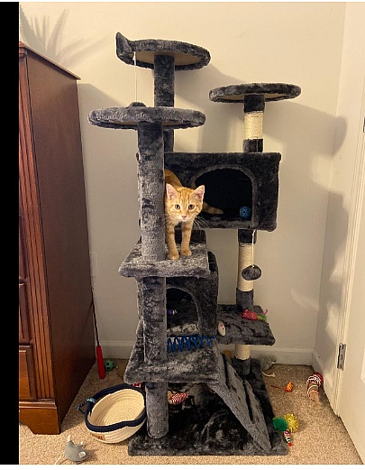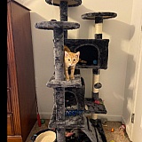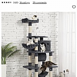I just became a proud parent of two happy cats, Orbit & Buddy. They are very frisky and love climbing on everything including my kitchen cabinets, which is a no no. I decided to check out some good cat trees and came across this huge 8 foot cat tree. Has a few hiding spots as well as toys, cat scratcher and tons of floating shelves. As soon as I received it, I put it togetherness my cats no longer have interest in my kitchen cabinets. My babies spend all day playing in their own personal jungle gym.