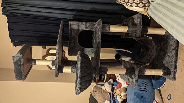 This is a great upgrade from his previous tree, and it is very sturdy even from the top of it.
