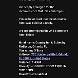 This $#*!ing places sends me a notification my hotel is available. I arrive late at night on vacation to find out after telling me my room is ready the hotel is over booked! I waited over 2 hours and all they did was refund me when I wanted to be relocated. Of course it was a busy weekend and went to 8 different hotels I could easily walk due to having no car and all were already full as it was already 11pm! Do not waste your time the people are brain dead that you have to deal with.