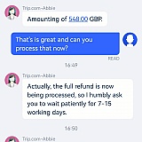 Trip.com is actually ridiculous; after a flight delay left me with literally 13 mins to get to my connecting flight, their manager advised that "33 mins" (technically 13mins because the flight doors took 20 mins to open to let off of the plane and don't even get me started with customs) was enough time to past customs and get to my next flight which here is a shocker, I missed. They refused to either provide a refund or replacement flight even though when booking a ticket it fully says "missed flight protection." And when I asked him if he thinks he could make it to his connecting flight in 13 mins, he kept repeating "according to the airline, that is enough time" Margo the so called manager and trip.com need to do better.