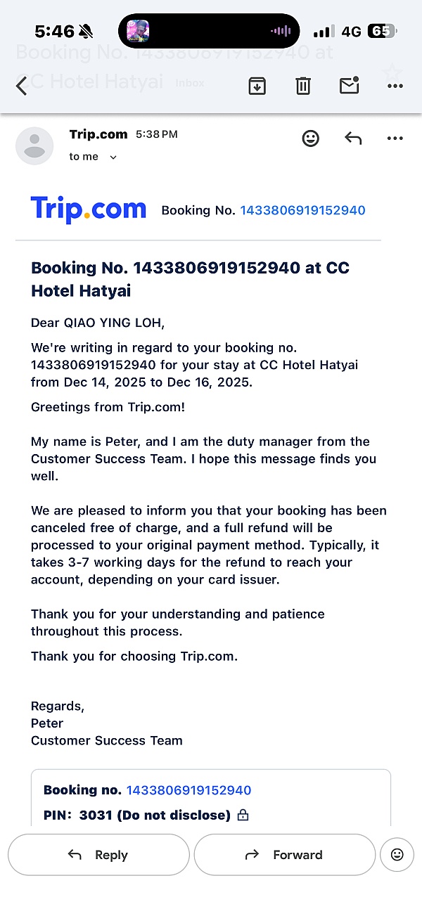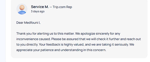 Thank you for your feedback. I apologize for any unsatisfactory you received from us regarding your experience. Please be guided that this is not the service we want you to receive from our side. We are here to help you in any way possible. To assist you better, please share more information and booking details by sending an e-mail to hotelbookingescalations@Trip.com to look into the matter. Your feedback is highly appreciated and thank you for your time in letting us have more improvement.