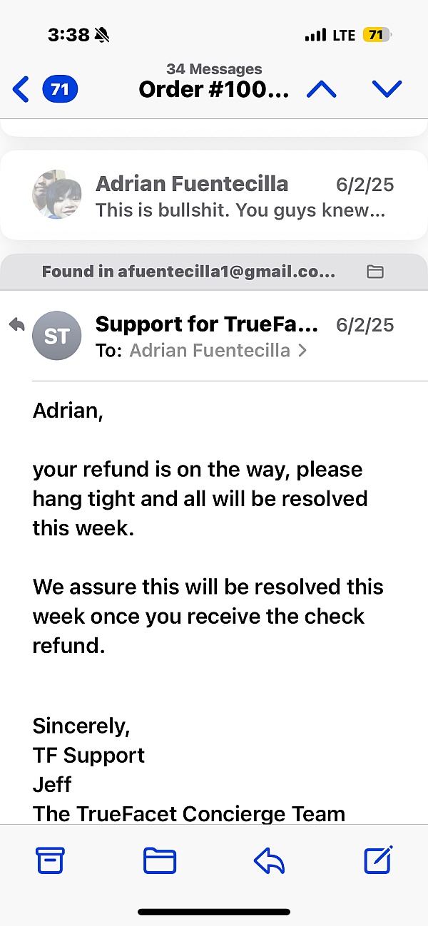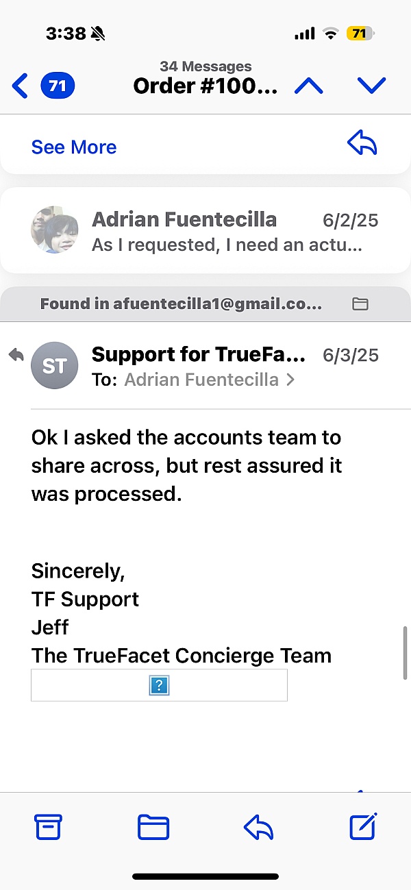 We are truly sorry for this potential issue, we will need to review the items in question to fully understand and then resolve. Please email us at support@truefacet.com