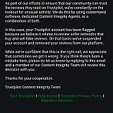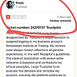 They cried to (un)Trustpilot who bowed to corporate pressure & removed them. Now stopped me reviewing! You can't talk to them they hide behind emails, taking days to answer. Stinks of corruption & they are woke busybodies. Shame on Trustpilot, no such thing as free speech